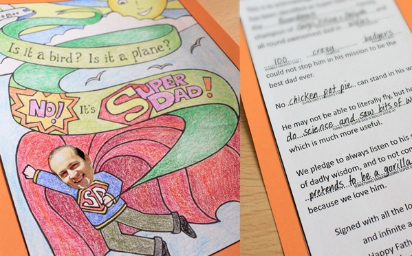 This coloring superhero card by Alpha Mom is an easy-breezy option that ranks high on cuteness factor—the best combo if we do say so ourselves. The kids can customize the fill in the blank section to make it their very own. Head over to Alpha Mom to download your card now.