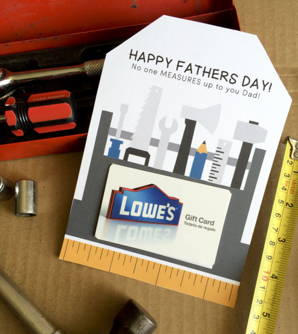 For DIY-obsessed dads, we love this easy idea from Lil’ Luna. It’s a free printable, so all you have to do is print it out, cut it out and stick it on the gift card of your choice. Snag the printable by clicking here.